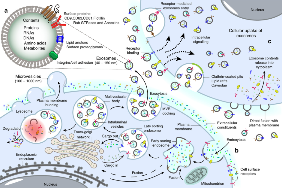 On prétend que ces vésicules extracellulaires peuvent « transporter » des « acides nucléiques » et agir en tant qu'agents de communication intercellulaire. L'image ci-dessous de ces supposées particules est le seul type d'image que vous verrez jamais de ces choses. Tout comme nos virus mythiques, vous ne les verrez QUE sous forme de bande dessinée, avec des dessins exceptionnellement détaillés et l'étiquetage des composants et des fonctions incroyablement spécifiques qu'ils remplissent.