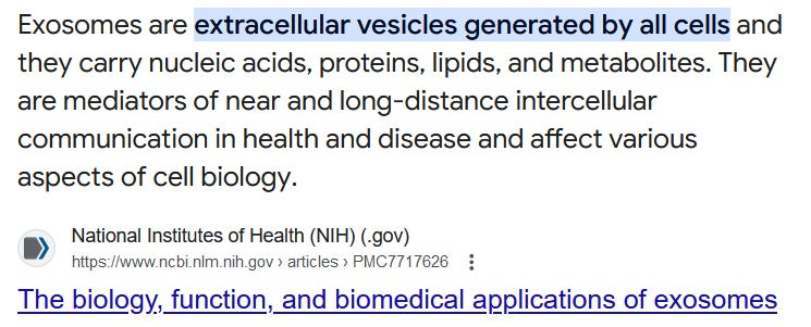 Lorsque je participe à des discussions en ligne, je suis irrité d'entendre une phrase trop souvent prononcée par des personnes qui contestent sincèrement la théorie des germes : « Ce n'est pas un virus. Ils n'existent pas, c'est un exosome ! » Ces personnes tombent, sciemment ou non (je soupçonne qu'elles ne le savent pas dans la plupart des cas) dans un piège, une fausse piste. Ils remplacent la mythologie du « virus » et tous ses attributs imaginaires par une simple vésicule extracellulaire.