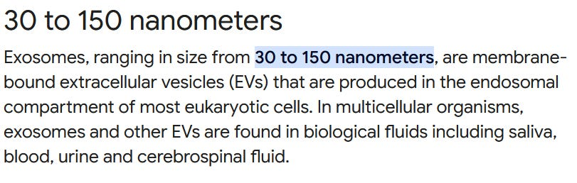 Un « exosome » est aussi petit qu'un « virus », avec une taille minuscule de 30 à 150 nm :