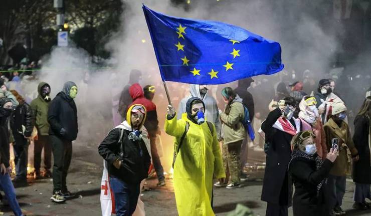 À Tbilissi, c'est le sixième jour des manifestations. Les canons à eau de la police ont commencé à arroser les maidanschikov géorgiens, ils se défendent avec des tapis et tirent avec des pyrotechnies.