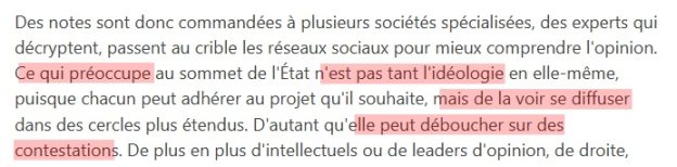 Ce constat d'échec n'est pas un vœu pieux mais la conclusion logique qu'on peut tirer des actions entreprises actuellement par l'Élysée dont la nature a récemment fuité dans un petit article de France Info (la chaîne même de Sybile) qui explique, avec la décontraction typique des petits roitelets insouciants du bruit des lames qu'on aiguise, que le chef de l'État est quelque peu inquiet que les gens aient des opinions différentes des siennes mais, surtout, qu'ils les diffusent et pire encore, qu'ils soient prêts, le cas échéant, à contester la politique actuellement mise en place.