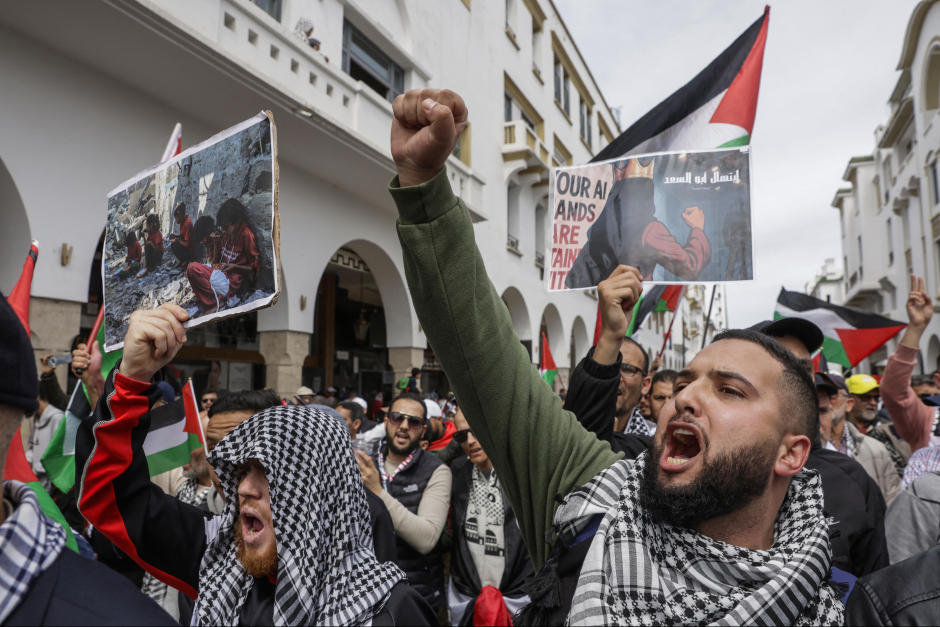 Lors d'une marche nationale en soutien aux Palestiniens et contre la normalisation des liens entre le Maroc et Israël (AFP)Partout dans le monde occidental, des peuples ripostent et se tiennent aux côtés du peuple palestinien contre leurs gouvernements.