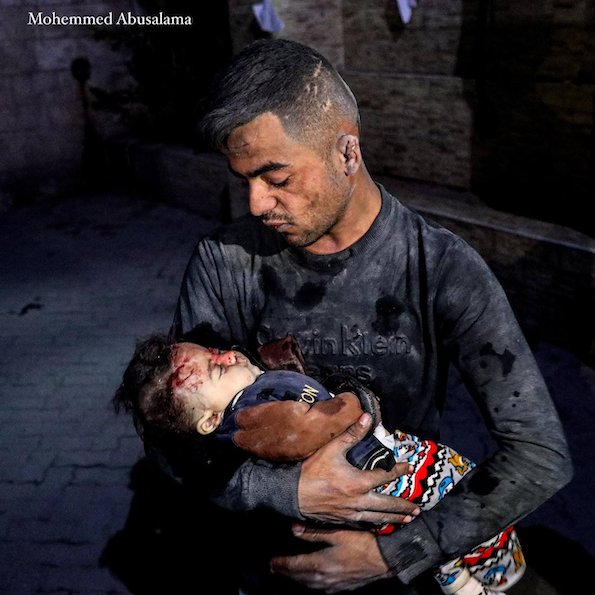 Muammar À Gaza, un père tient le corps sans vie de sa fille et lui dit adieu pour la dernière fois.