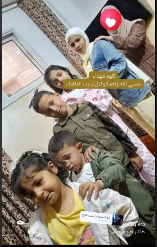 Hesam El Adlony, le plus jeune frère de Rasha Dr Abed Aziz, veuve de Rasha, a été assassiné avec sa femme enceinte et ses enfants dans leur tente.