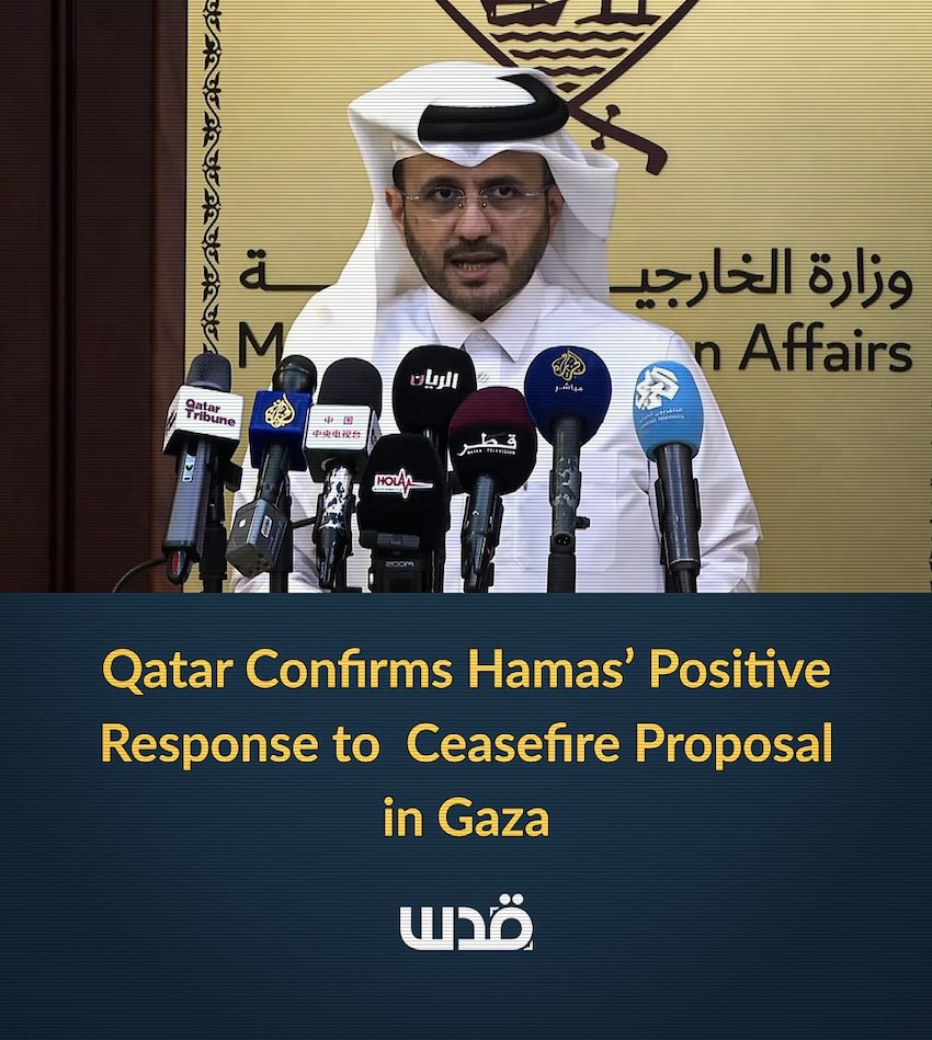 Le porte-parole du ministère qatari des Affaires étrangères, Majid al-Ansari, a évoqué l'évolution de l'accord de cessez-le-feu à Gaza, affirmant que le Qatar et l'Égypte avaient reçu une réponse positive du Hamas et attendaient la réponse d'Israël.