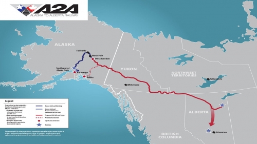 Pour sa part, le président Trump nous a donné quelques indications de son intérêt pour le raccordement ferroviaire de l'Alaska au continent lorsqu'il a annoncé, en septembre 2020, son approbation du projet de liaison ferroviaire de 2579 kilomètres entre l'Alaska et l'Alberta (A2A).