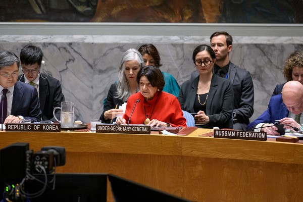 UN Photo/Loey Felipe. Rosemary DiCarlo, Secrétaire générale adjointe aux affaires politiques et à la consolidation de la paix, lors de la réunion d'urgence du Conseil de sécurité de l'ONU.