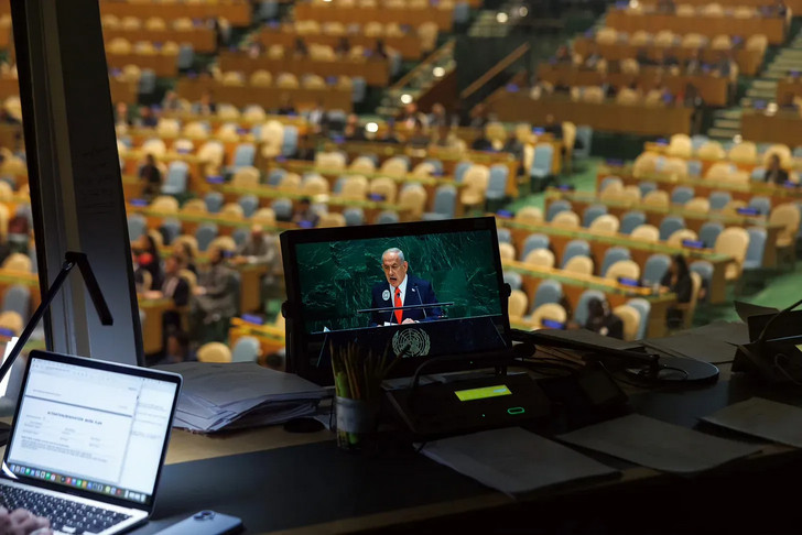 ❖ Des dizaines de délégués de plusieurs pays ont quitté la salle lorsque Netanyahu est monté sur scène. AP rapporte que les États-Unis et le Royaume-Uni n'ont pas envoyé leurs plus hauts responsables ni leur ambassadeur à l'ONU pour assister à la réunion, mais plutôt des diplomates de moindre importance. En réponse à la reconnaissance de l'État palestinien par plusieurs pays, Netanyahu a déclaré :