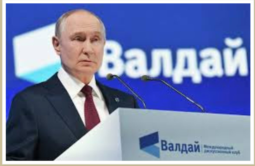 Hier, le Président russe s'est prononcé dans une allocution fleuve de près de 4 heures au Club Valdaï. Rien de nouveau n'a été prononcé, même si le porte-parole du Kremlin annonçait des sensations à venir. Le but était manifestement de démontrer la force tranquille et sûre d'elle de la Russie, sans oublier une complaisance particulière et appuyée pour Trump et les Etats-Unis.