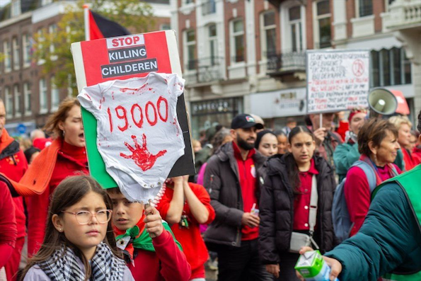 Des dizaines de milliers de personnes ont envahi les rues d'Amsterdam, aux Pays-Bas, pour commémorer les deux ans du début du génocide israélien à Gaza et exprimer leur soutien au peuple palestinien.