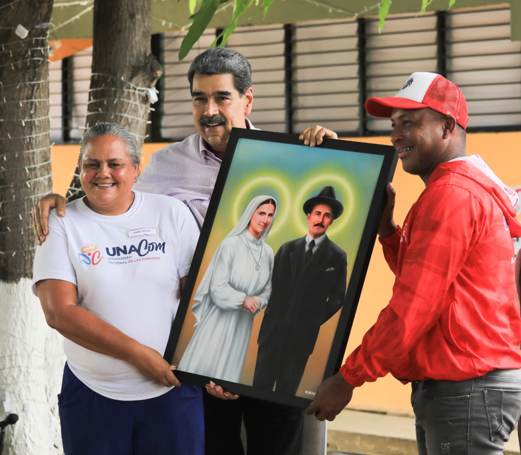 À la fin de cette rencontre très intime et très proche, le président, chrétien croyant, remet à la commune un beau tableau représentant les deux nouveaux saints vénézuéliens récemment canonisés par le pape Léon XIV : Saint José Gregorio Hernández, le «médecin des pauvres», et Sainte Carmen Rendiles, «servante de Jésus». Pour finir, au nom de la République, le mandataire offre par surprise à toute la population de La Segundera une ambulance flambant neuve, accueillie par la foule avec des cris d'enthousiasme et des clameurs de joie.