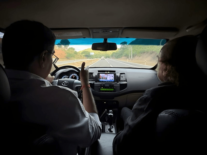 La rencontre prend fin. Entouré et embrassé par les membres de la commune qui souhaitent prendre une photo avec lui, le président me fait signe discrètement de m'approcher de son véhicule garé à environ cinq mètres. Il parvient enfin à se libérer de l'emprise enthousiaste de la foule et monte à bord, du côté du conducteur. Je monte à côté de lui par la porte opposée. Aucun garde du corps ne nous accompagne. Le président démarre et pendant une heure et demie, nous pouvons discuter tranquillement de ce moment crucial que traverse le Venezuela.