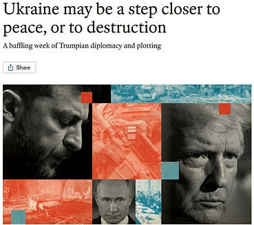 Cette remarque sous-entend que la Russie n'a pratiquement rien à gagner de ces pourparlers, car en poursuivant la guerre, elle gagnera de plus en plus de territoire ; même Trump semble comprendre qu'il demande en réalité une faveur à la Russie.