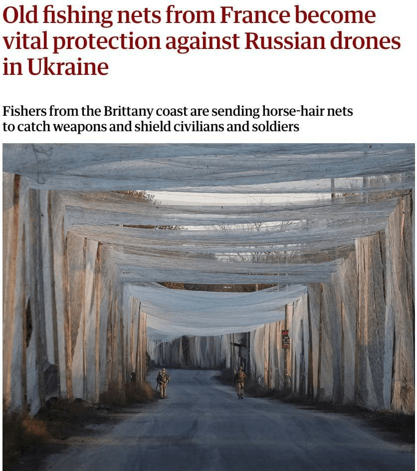 Parallèlement, les forces russes utilisent des drones larguant du napalm pour incendier les tunnels de filets ukrainiens :