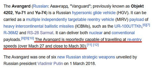 Rappelons que l'Avangard vole à quelques lieues au-dessus, à Mach 30 :