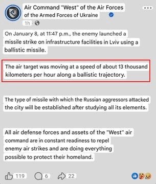 Il est intéressant de noter que le compte officiel de l'armée de l'air ukrainienne a annoncé que le lancement avait été détecté à 23h30 :