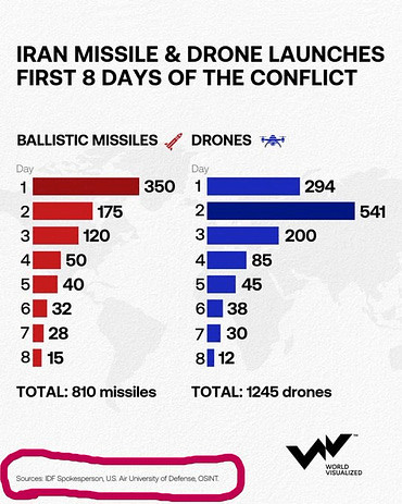 En résumé, l'Iran ne fait qu'appliquer ses procédures de frappe doctrinales habituelles. Le faible nombre de salves devrait vous inquiéter, car il représente le volume de base que l'Iran peut maintenir indéfiniment tout en reconstituant ses stocks à l'identique.