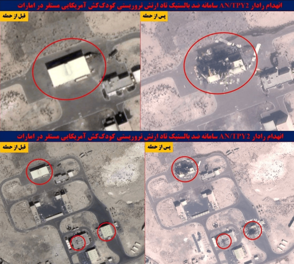Des images satellites récemment publiées révèlent l'étendue des frappes ciblées menées par l'Iran contre les systèmes radar américains de défense antimissile THAAD (Terminal High Altitude Area Defense) début mars 2026, stationnés aux Émirats arabes unis, sur les bases d'Al Ruwais et d'Al Sader".