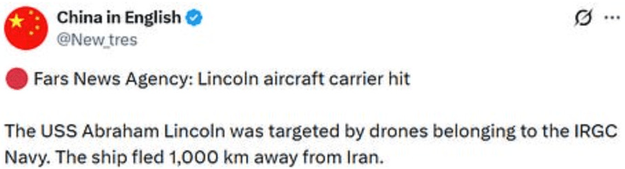 Plus intéressant encore est le fait que des responsables iraniens aient affirmé que le retrait de l'USS Lincoln était dû à une frappe réussie de drones.