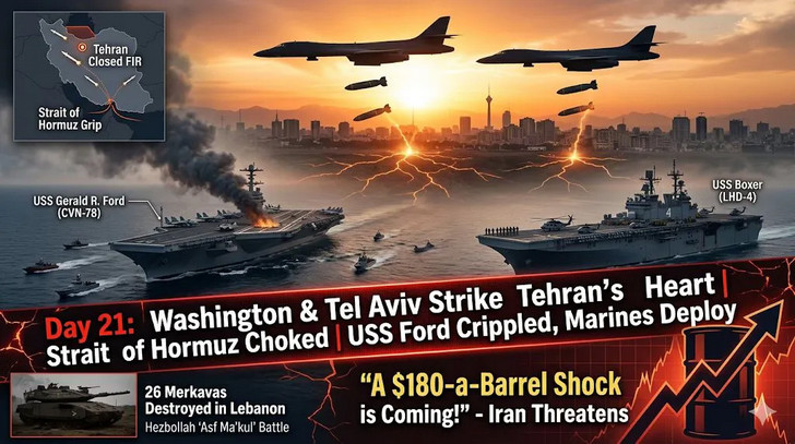 IntelSky@Intel_Sky Day 21: Washington and Tel Aviv Strike the "Heart of Tehran" with Bunker-Buster Bombs, and the US Deploys 2,200 New Marines After its Fleet Catches Fire... Iran Threatens: "A $180-a-Barrel Shock is Coming!" - Talal Nahle Strategic and Operational Report (Friday - March 20, 2026 2:47 AM · Mar 20, 2026 · 5.03K Vues -- 1 Répondre · 36 Reposts · 78 Likes
