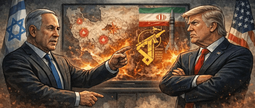 Ces scénarios sont fondés sur le postulat que Donald Trump et Benjamin Netanyahou sont entrés dans le conflit avec des objectifs tactiques temporairement alignés mais des objectifs stratégiques finaux fondamentalement divergents. Trump a besoin d'une victoire rapide et défendable sur le plan électoral qui stabilise les marchés et soit présentée comme l'infliction de dommages. En revanche, Netanyahou a besoin d'une campagne à durée indéterminée qui puisse être présentée de manière crédible comme l'élimination décisive de la menace iranienne. Cette tension est encore intensifiée par la convergence de pressions externes, y compris la vulnérabilité usaméricaine avant les élections de mi-mandat, les manœuvres électorales israéliennes, le choc énergétique lié au détroit d'Ormuz, la sensibilité accrue aux pertes et l'échec des hypothèses d'effondrement rapide du régime.