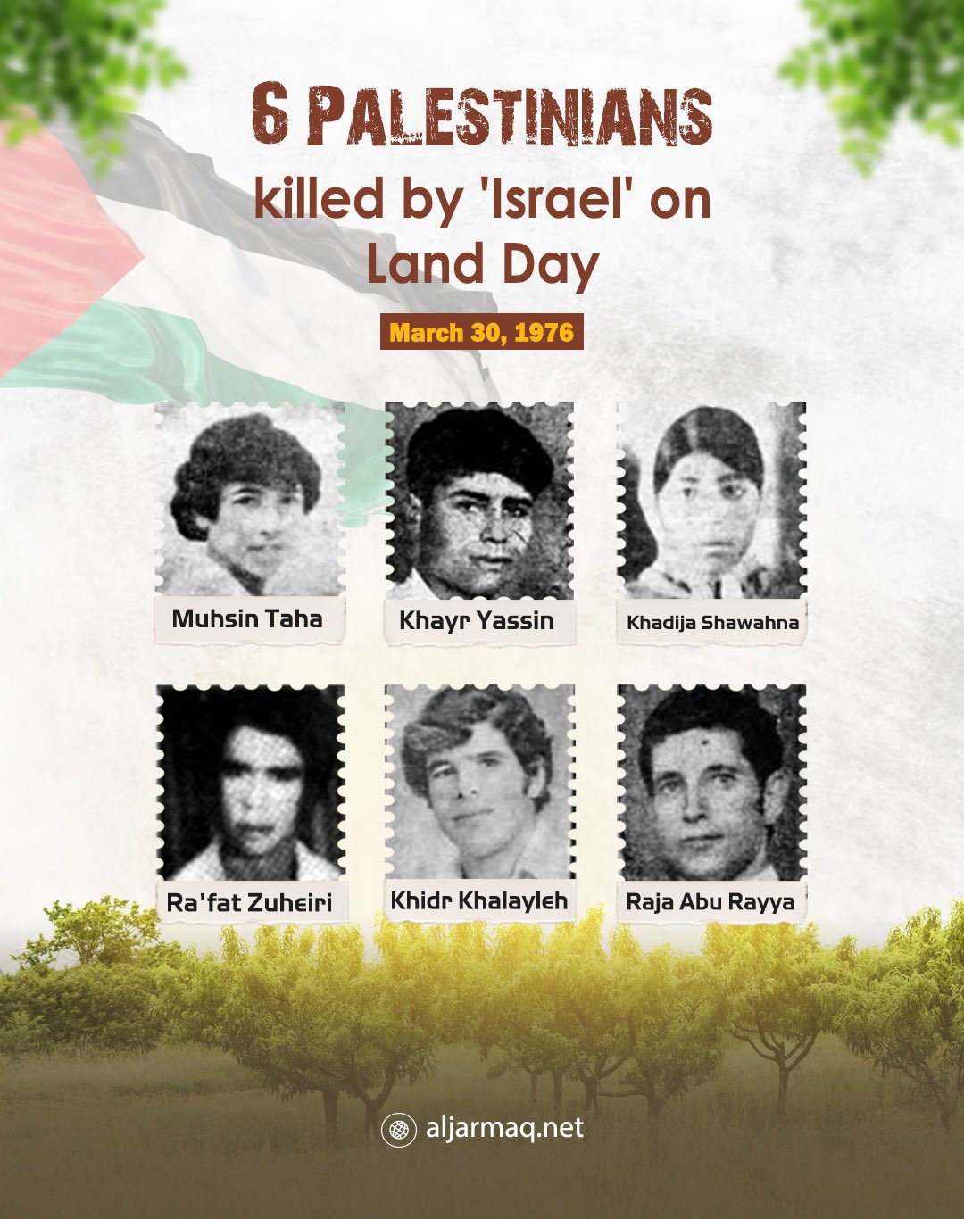 Les 6 Palestiniens tués par l'armée d'occupation israélienne le 30 mars 1976.